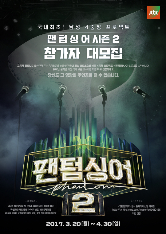 지난 겨울, 크로스오버(cross over) 음악의 열풍을 일으켰던 꽃남자들의 하모니 '팬텀싱어'도 시즌 2로 여름밤을 수놓는다. '팬텀싱어2'는 장르 불문, 대한민국 최고의 남성 4중창 그룹을 결성하는 오디션프로그램이다. 시즌 1은 5.3%의 높은 시청률뿐만 아니라 음원의 실시간 차트 석권, 평일 화제성 1위, 콘서트 매진 행진을 이어가는 열풍을 일으켰다. '팬텀싱어2' 역시 시즌 1의 기록을 이어받아 더욱 강력해진 보컬들의 도전을 그려낼 전망이다. 8월 방송을 목표로 준비 중.