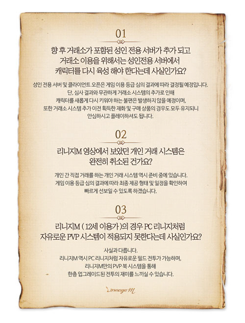 또한 관심을 모으는 것은 향후 리니지M의 서비스가 어떻게 진행될지 여부다. 현재 가능성이 높은 것은 거래기능이 없는 '틴버전'과 거래버전이 들어간 '성인 버전'을 별도로 서비스하는 것이다.