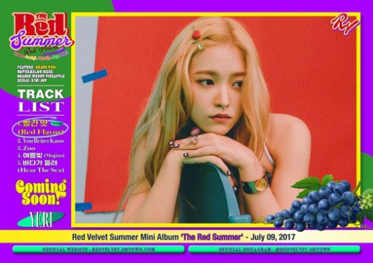 레드벨벳의 여름 미니앨범 'The Red Summer'는 시원한 여름 분위기를 느낄 수 있는 다채로운 장르의 5곡이 수록되어 있으며, 오는 9일 낮 12시 각종 음악 사이트를 통해 음원 공개되는데 이어, 10일 음반 발매될 예정이어서 글로벌 음악 팬들의 많은 사랑을 받을 것으로 기대된다.
