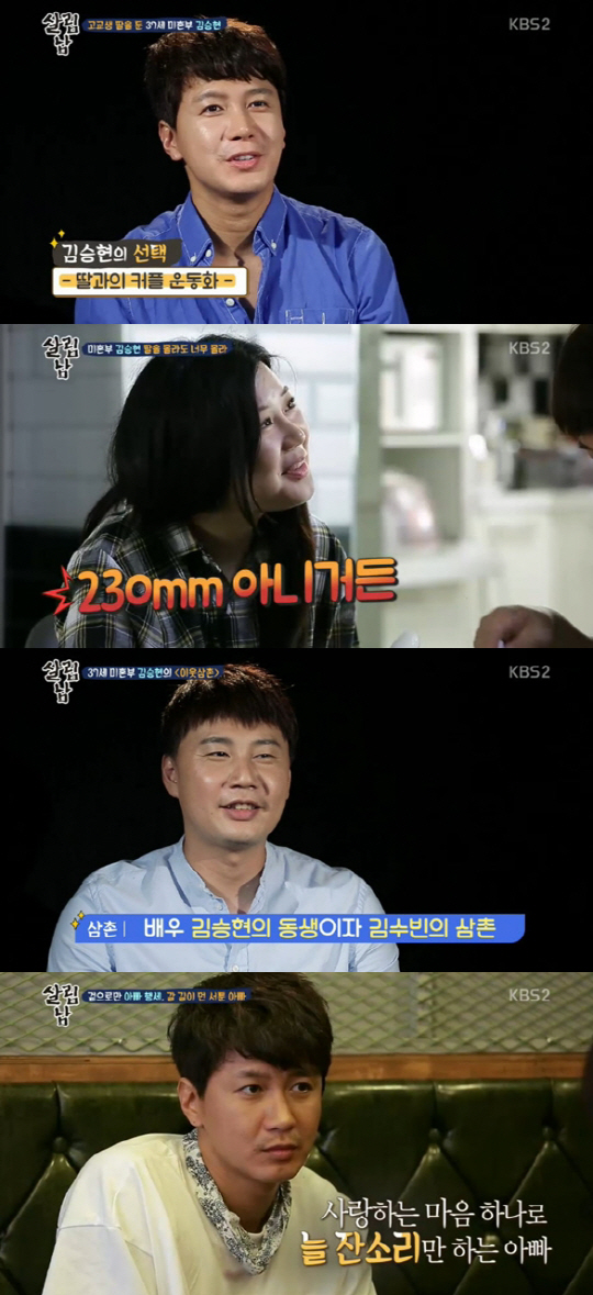 이날 김승현은 자신이 좋아하는 것을 딸과 공유하면 좋을 것 같다는 생각으로 자신이 좋아하는 것 중 하나인 운동화를 선택해 커플로 구매했다. 그런데 김승현이 사온 운동화가 수빈의 발에 맞지 않아 김승현을 당황스럽게 했다.