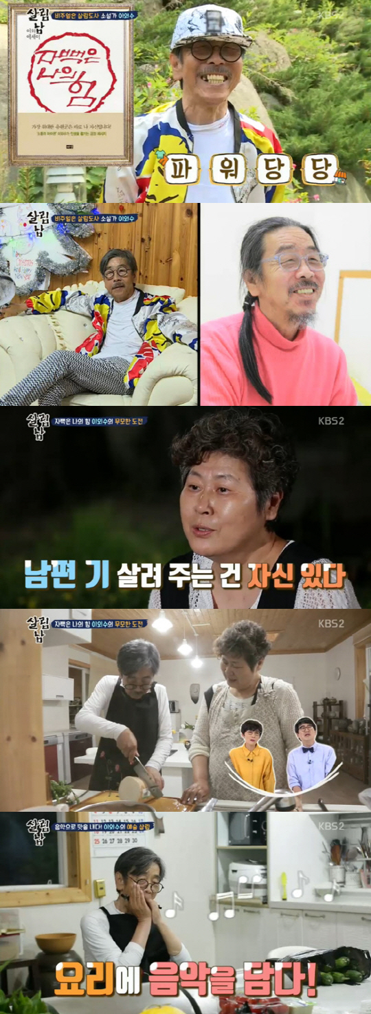 이때 아내가 나섰다. 아내는 불안해 하면서도 이외수의 요리 도전을 도와줬다. 이외수의 서툰 칼질에도 "진짜 쉐프처럼 잘한다"며 아이같은 남편의 기를 살려주는 모습으로 훈훈함을 안겼다.