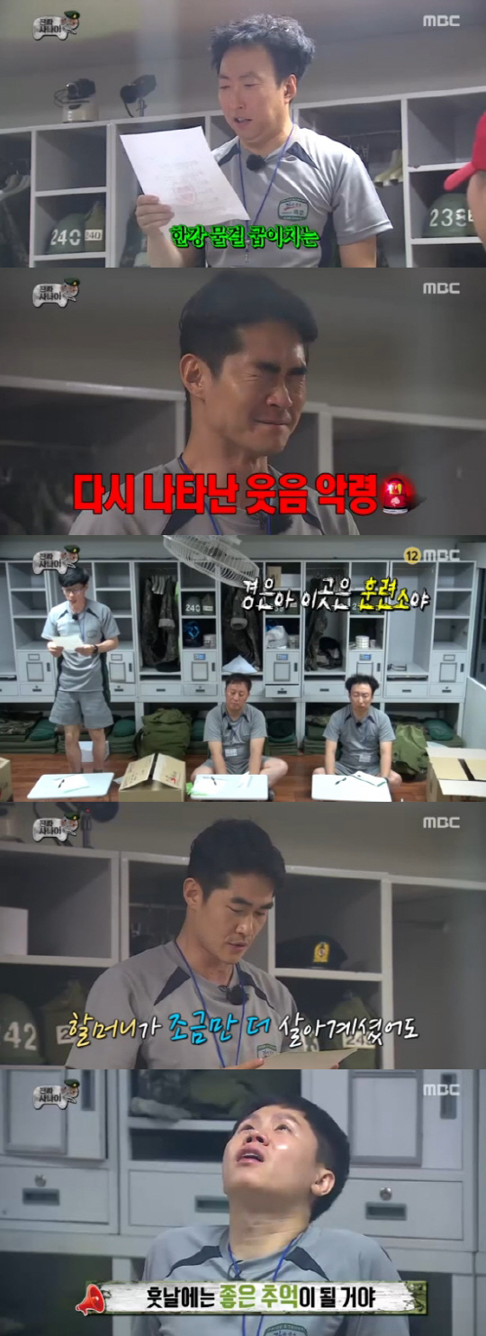 부활된 '웃음 사냥꾼' 박명수의 실수에서 비롯된 웃음 폭탄은 계속됐다. 10분간 긴장 속에서 대표로 저녁 점호 보고를 배우며 진땀을 흘리는가 하면, 사단가를 배우는 과정에서도 어이없는 가사 실수로 멤버들에게 고통의 웃음 참기 시련을 안겼다.