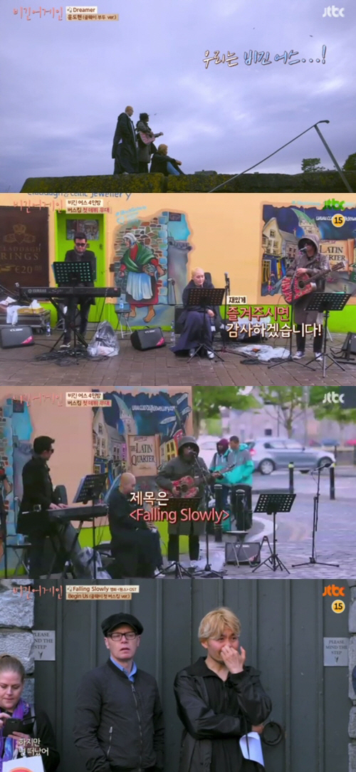 거센 바람에 악보까지 흩날렸지만, '비긴 어스'는 꿋꿋하게 다음 곡을 준비했다. 이소라의 '청혼'이 이어졌고, '비긴 어스'는 악보가 계속 날아가는 열악한 상황에서도 최선을 다해 열창했다. 윤도현은 "바람도 불고, 제일 어려운 청혼을 하는데 그때 악보가 날아가버렸다. '최악이구나. 끝났다'는 생각이 들었다"고 털어놨다. '비긴 어스'는 마지막으로 'falling slowly'를 부르며 첫 버스킹 무대를 끝냈다.