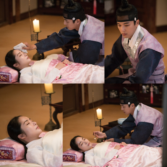 [스포츠조선닷컴 홍민기 기자] '7일의 왕비' 박민영 연우진의 간호로맨스가 포착됐다.