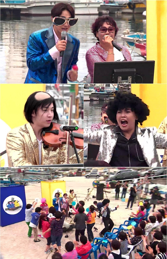 공개된 사진에는 이석훈-헨리-한동근이 잔뜩 흥이 올라 트로트를 즐기고 있다. 형형색색의 반짝이 의상을 차려입은 세 사람은 대왕 선글라스, 대머리가 가발 등 다양한 소품을 활용해 신명 나는 무대를 연출하고 있다. 마을 주민들도 흥겨운 무대에 흥을 참지 못하고 춤을 추고 있어 보는 이들의 어깨를 들썩이게 만든다.