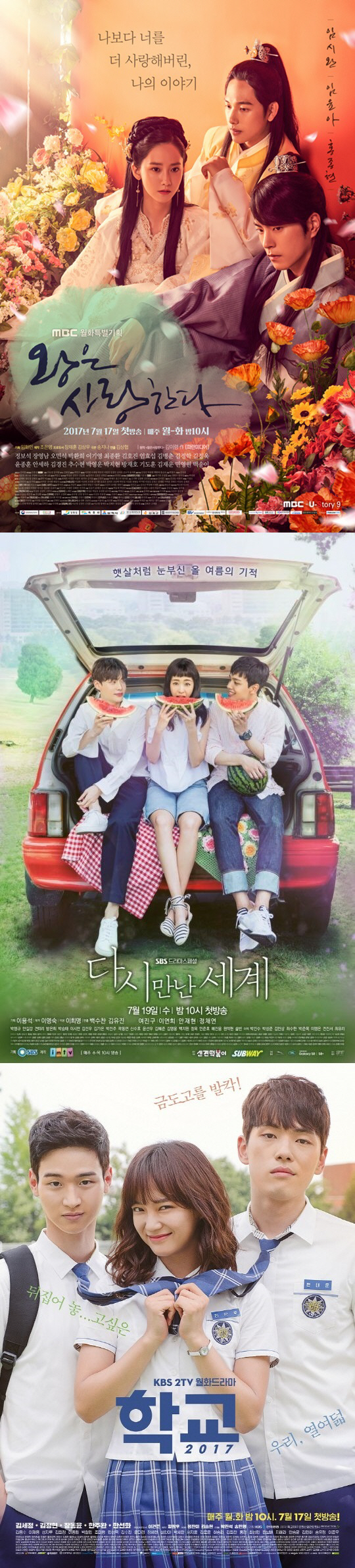 [스포츠조선 김영록 기자]신작 드라마 '다시만난세계'-'왕은사랑한다'-'학교2017'이 나란히 7월3주차 TV화제성 1-3위에 올랐다.