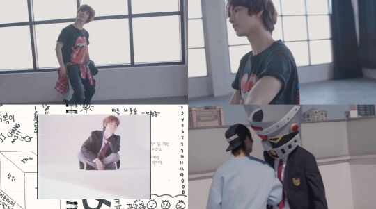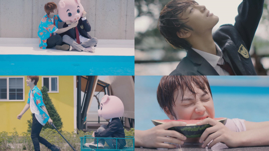 영상 내내 멍뭉미를 발산하며 모성애를 자극한 귀여운 소년 영훈. 그의 곤히 잠든 모습과 천진난만한 웃음은 마치 작은 강아지를 떠올리게 만든다. 영훈은 소화하기 어려운 형광색의 티셔츠 마저도 완벽하게 소화해내며 순수한 소년의 느낌을 잘 살려냈다. 또 그는 오버핏 스트라이프 후드티를 입고 서툰 솜씨로 아침 식사를 요리하기도 하고 장난스럽게 교복 넥타이를 입에 물기도 하며 특유의 아이 같은 매력을 발산했다.