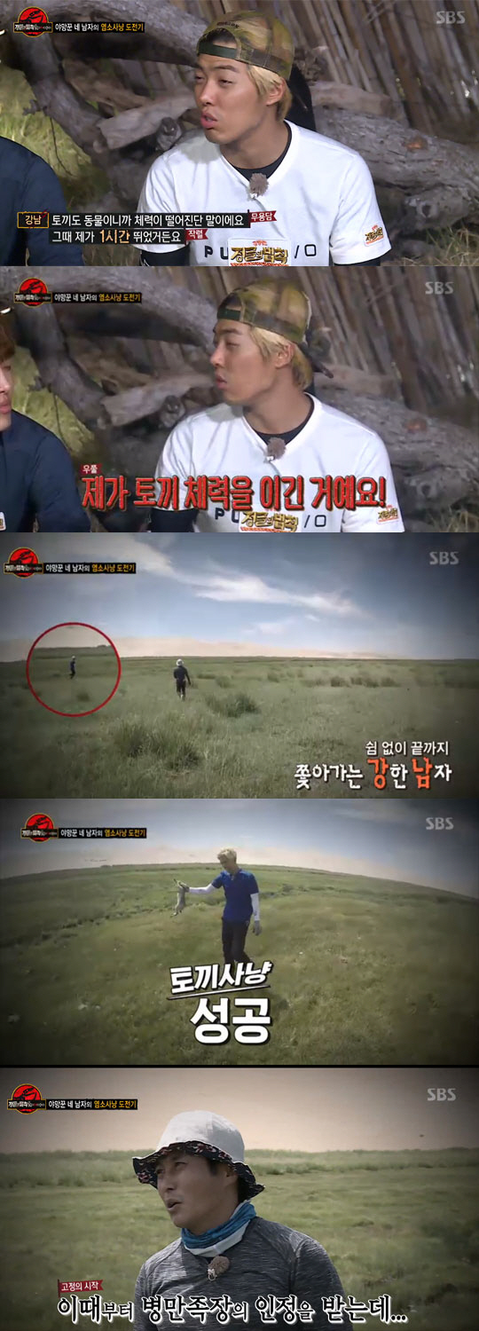 초원을 1시간 동안 질주해 토끼를 잡으면서 김병만 족장의 인정을 받았다는 것. 강남은 "토끼 잡고 신인상 받았다"면서 "그 이후로 마땅히 잡은 게 없다"라고 의욕을 불태웠다.