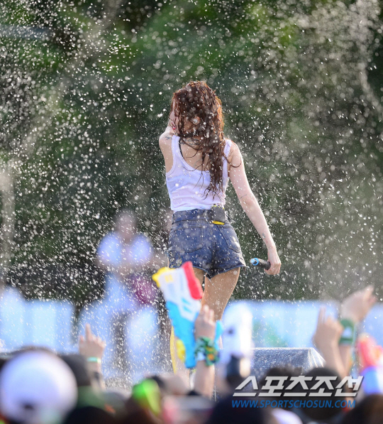 가수 현아가 29일 오전 서울 잠실종합운동장에서 열린 신개념 워터 버라이어티 뮤직 페스티벌 '워터밤 2017' 행사에서 공연을 하고 있다.