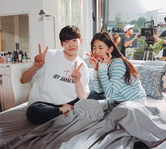 다정한 모습의 이종석과 배수지. 이어 두 사람은 카메라를 향해 브이 포즈와 환한 미소를 지어보이며 마지막 촬영의 아쉬움을 달랬다.