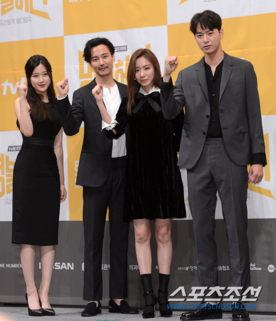 배우 문가영 김남길 김아중 유민규가 1일 임피리얼팰리스에서 열린 tvN 새 토일드라마 '명불허전'의 제작발표회에서 포즈를 취하고 있다. tvN 새 토일드라마 '명불허전'은 조선 최고의 침술가로 불렸던 실존인물 허임에 작가의 상상력을 더한 참신한 이야기로 올 여름 시청자를 찾는다. 가까이 하기에 달라도 너무 다른 극과 극 의학남녀의 좌충우돌 만남을 통해 과거와 현재를 오가며 흥미로운 이야기가 펼쳐진다. 오는 8월 12일 첫 방송. 허상욱 기자 wook@sportschosun.com/2017.08.01/