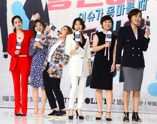 지난달 31일 서울 영등포 타임스퀘어 아모리스홀에서는 온스타일 이슈 토크쇼 '뜨거운 사이다' 제작발표회가 열렸다. 온스타일이 개편을 맞이해 선보이는 '뜨거운 사이다'는 6인의 여성 출연진이 한 주를 '뜨겁게' 달군 최신 이슈에 대해 사이다처럼 '속 시원하게' 이야기를 나누는 토크쇼 프로그램. 아나운서 박혜진, 코미디언 김숙, 배우 이영진, 변호사 김지예, CEO 이여영, 저널리스트 이지혜가 출연한다.