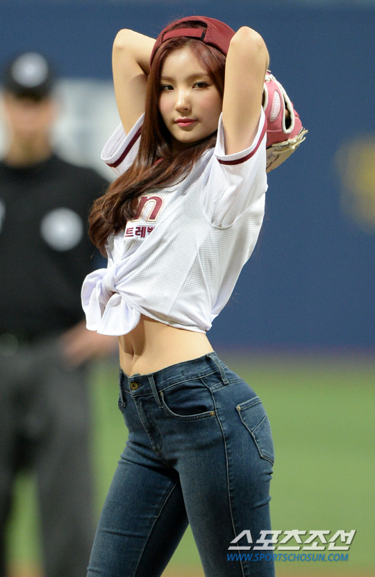 넥센 히어로즈와 SK 와이번스의 2017 KBO 리그 경기가 2일 고척스카이돔에서 열렸다. 경기 전 걸그룹 앨리스의 소희가 시구를 가린이 시타를 맡았다. 힘차게 공을 던지는 소희의 모습.