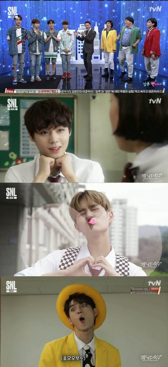 이날 방송에서는 Mnet 아이돌 육성 프로그램 '프로듀스101 시즌2'를 통해 데뷔하게 된 워너원이 완전체로 출연했다. 워너비 남친의 정석 '3분 남자친구1', 폭염도 날릴 그 남자의 쿨한 사랑법 바캉스 특집 '살남자4', 생활 속 워너원 덕통사고 순간 포착 '위기탈출 워너원' 등 코너 등을 선보이며 웃음을 자아냈다.