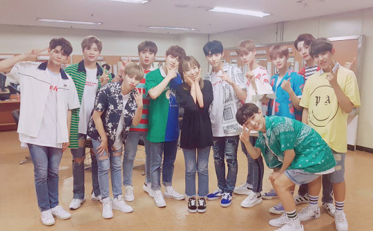 [스포츠조선 김영록 기자]방송인 오나미가 그룹 워너원과의 인증샷을 공개했다.