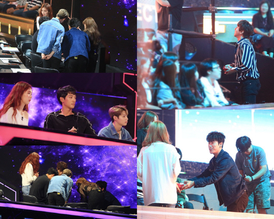 6인은 녹화가 진행되는 동안 진지한 태도로 후배들이 준비한 무대를 지켜봤다. 후배들의 숨겨진 가능성과 잠재력을 발굴하기 위해 3일 동안 이어진 녹화에도 지친 기색 없이 프로페셔널한 면모를 보였다는 후문.