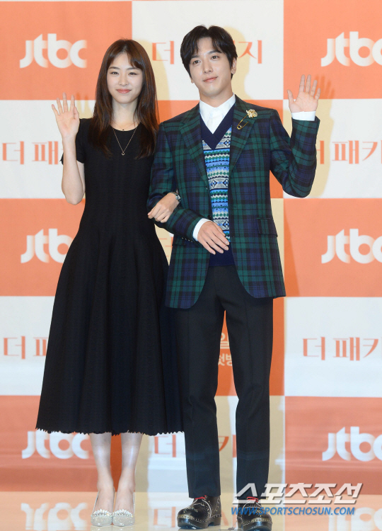 탤런트 이연희와 정용화가 11일 영등포 타임스퀘어에서 열린 JTBC 새 드라마 '더 패키지' 의 제작 발표회에서 포토타임을 갖고있다. '더패키지'는 각기 다른 이유로 패키지여행을 선택한 사람들이 관계를 맺게 되면서 벌어지는 사건과 소통의 여정을 그려나갈 여행 드라마로, 드라마 '추노', '7급 공무원', 영화 '해적' 등 히트작 메이커 천성일 작가의 드라마 복귀작으로 방송가 안팎의 주목을 받고 있다. 영등포=최문영 기자 deer@sportschosun.com /2017.10.11/ |