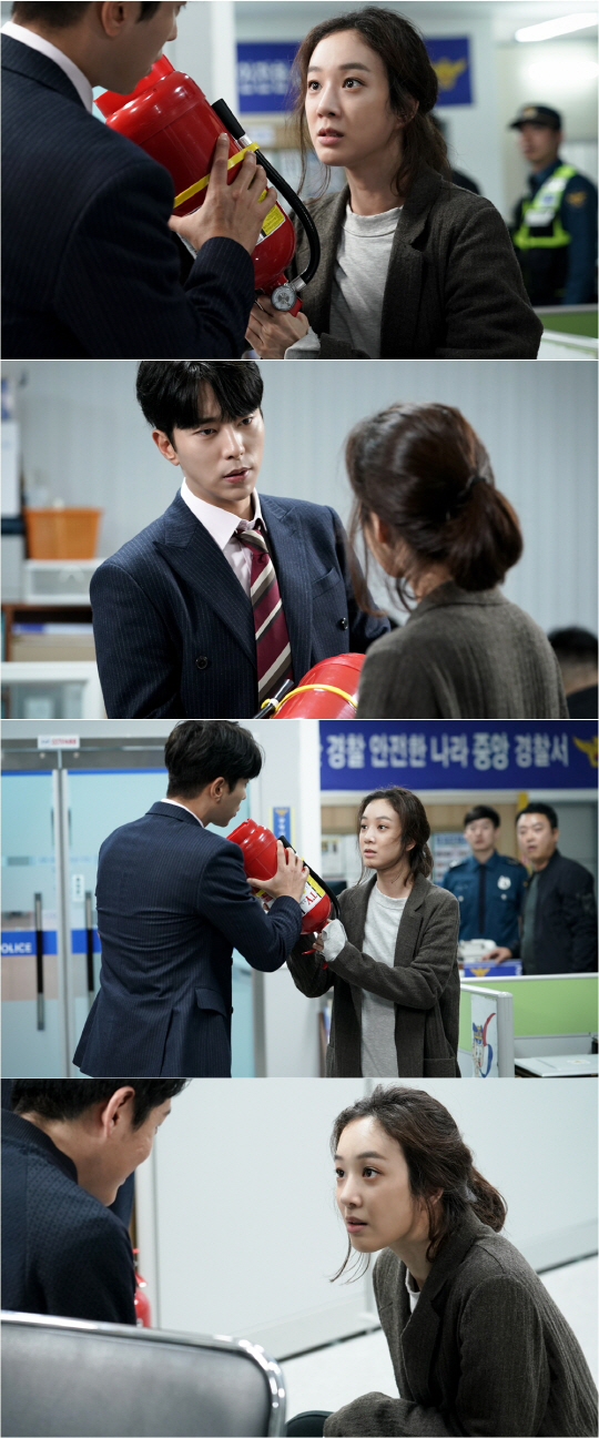 [스포츠조선닷컴 정유나 기자] '마녀의 법정' 정려원이 소화기를 들고 일어났다. 몰래카메라의 타깃이 된 정려원이 경찰서를 찾아 끓어오르는 분노를 참지 못하고 옆에 있던 소화기를 들어 투척하기 직전의 모습이 포착된 것. 스틸 속 그녀의 화장기 없는 민낯과 영혼이 나간 듯한 눈빛은 그녀의 상황을 고스란히 전해주며 이목을 집중시킨다.