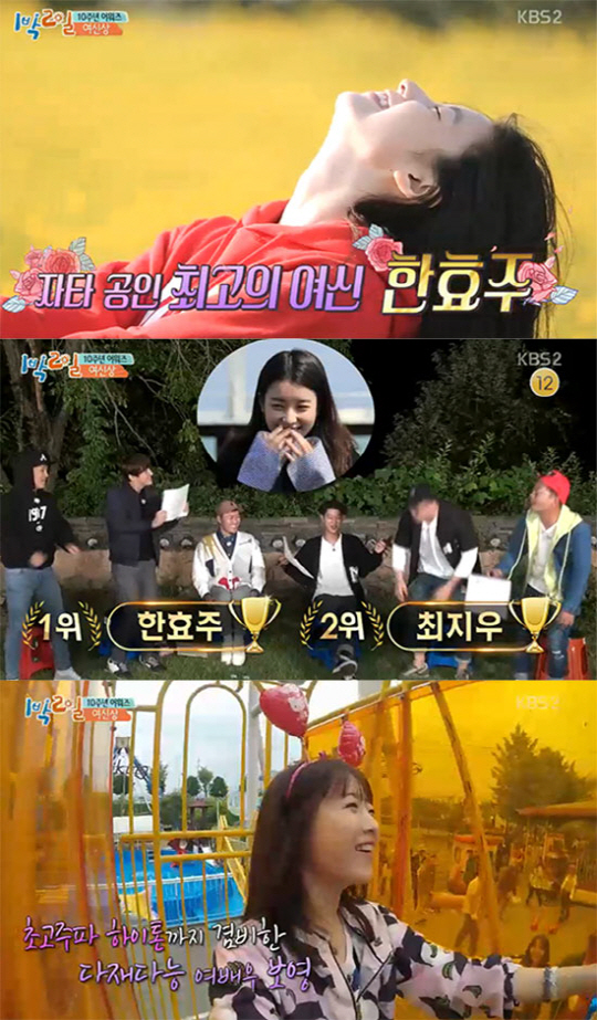 [스포츠조선닷컴 홍민기 기자] 배우 한효주가 '1박 2일' 최고의 여신으로 뽑혔다.