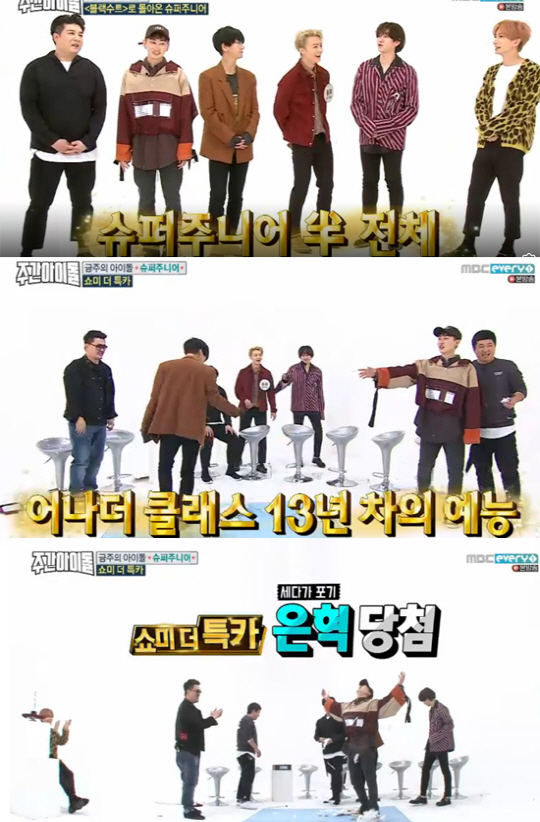 8일 방송한 MBC에브리원 '주간아이돌'에서는 13년차 아이돌 슈퍼주니어가 8집 정규 앨범 발매와 함께 6인조로 돌아왔다.
