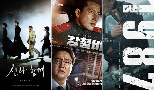 '신과 함께'와 같은 날 개봉하는 '강철비'(양우석 감독, 와이웍스엔터테인먼트 제작) 역시 기대작이자 대작으로 꼽힌다. 지난 2013년 개봉해 전국 관객 1137만 명을 동원한 '변호인'의 양우석 감독의 신작으로 '만약에 북한에서 쿠데타가 발생한다면? '북한 권력 1호가 남한으로 넘어온다면?' 이라는 과감한 상상력에서 시작된 작품이다. 대한민국의 과거, 역사를 기반으로 한 실화 소재의 영화가 쏟아지고 있는 최근 국내 충무로의 트렌드와 결을 달리하며 '가장 가까운 미래, 대한민국 최초의 핵전쟁'이라는 새롭고 신서한 소재부터 관객의 궁금증을 자아낸다.