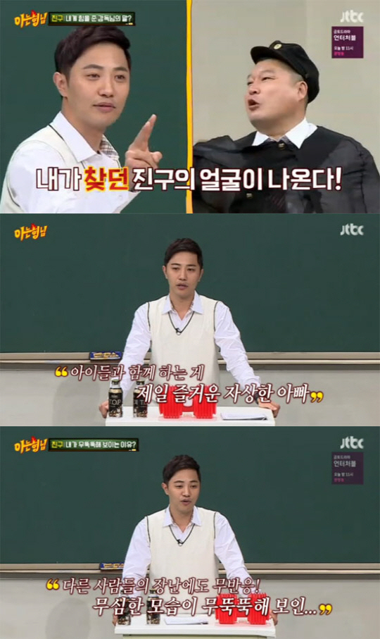 "내가 강심장이라서 잘 안 놀란다"는 그는 "그래서 사람들이 무뚝뚝한 성격으로 본다"고 말했다. 실제 진구가 이야기하는 도중 제작진이 사람 머리카락을 떨어뜨렸지만 놀라지 않았다.