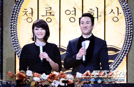 제38회 청룡영화상 시상식이 25일 서울 경희대학교 평화의 전당에서 열렸다. 사회를 맡은 김혜수와 이선균이 인사말을 하고 있다. 조병관 기자 rainmaker@sportschosun.com/2017.11.25/ |