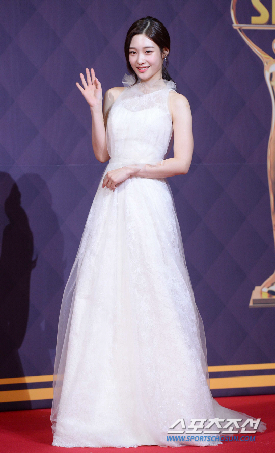 SBS '다시 만난 세계'를 통해 연기자로의 변신에 성공한 정채연. 그와 화이트 컬러의 조합은 언제나 옳죠. 이날 또한 화이트 홀터넥 드레스를 입고 여신 미모 제대로 뽐냈습니다. 샤 소재의 네크라인 디테일이 얼굴을 더욱 화사하게 살릴 뿐 아니라 레드카펫에 걸맞은 로맨틱한 분위기를 자아냅니다.