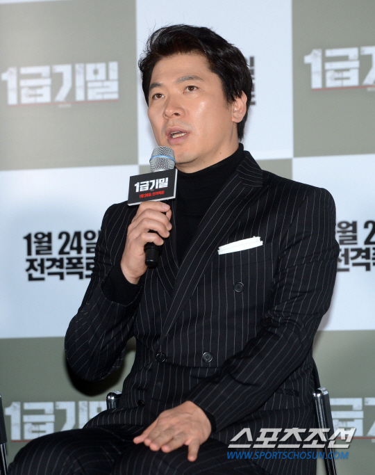 영화 '1급기밀'의 언론시사회가 11일 롯데시네마 건대입구에서 열렸다. 김상경이 인사말을 하고 있다. 영화 ''1급기밀'은 국가라는 이름으로 봉인된 내부자들의 은밀한 거래를 폭로하는 범죄 실화극이다. 허상욱 기자 wook@sportschosun.com