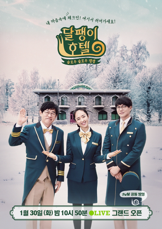 제작진이 공개한 포스터에서는 하얀 눈이 쌓인 자연과 호텔을 배경으로 세 명의 MC이자 호텔 직원인 이경규, 성시경, 김민정이 환하게 웃고 있어 눈길을 끈다. '슬로우 슬로우 잼잼'이라는 문구처럼, 강원도 산골에 자리잡은 호텔에서 잠시나마 느림의 미학을 즐기고 더불어 재미까지 얻어가는 기회가 될 것으로 알려져 기대감을 키운다.