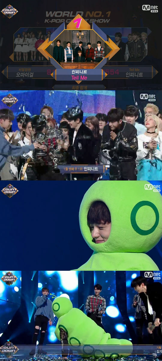 18일 Mnet '엠카운트다운'에서 신곡 '텔미'로 돌아온 인피니트가 오마이걸의 '비밀정원'을 꺾고 1위를 차지했다.