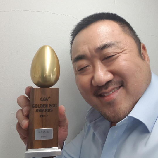 [스포츠조선닷컴 정안지 기자] 배우 마동석이 CGV에서 주최한 '골든에그 어워즈2017'에서 배우연기상을 수상했다.