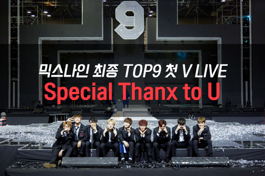 9명의 소년들은 '믹스나인' 데뷔조로 선발된 소감과 응원해준 팬들에게 감사 인사를 전하는 시간을 가질 예정이다. 최종 TOP9이 첫 완전체로 브이 라이브에 참여한다는 소식이 전해지자 벌써부터 높은 기대감이 일고 있다.
