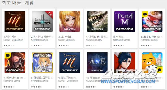 한국 게임 업계에서 '3N'으로 불리는 넥슨, 넷마블게임즈(이하 넷마블), 엔씨소프트(이하 엔씨)가 중국 게임과 중견 게임사들의 신작까지 모두 밀어내고 국내 구글 플레이 모바일게임 최고 매출 순위를 11위까지 휩쓸었다.