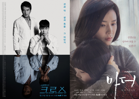 한편 살의를 품고 의술을 행하는 천재 의사 '강인규'(고경표 분)와 그의 살인을 막으려는 휴머니즘 의사 '고정훈'(조재현 분)이 생사의 기로에서 펼치는 메디컬 복수극 '크로스'는 매주 월 화 밤 9시 30분에 방송, 엄마가 되기엔 차가운 선생님 수진(이보영 분)과 엄마에게 버림받은 8살 여자 아이 혜나(허율 분)의 진짜 모녀가 되기 위한 가짜 모녀의 가슴 시린 모녀 로맨스 '마더'는 매주 수 목 밤 9시 30분에 방송된다.