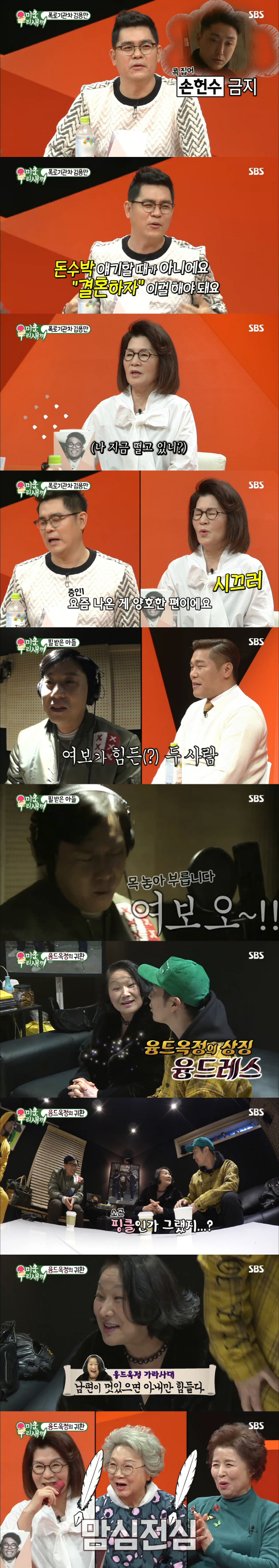 어머니계의 선도주자인 김옥정 여사는 이어 "남편이 멋있으면 아내만 죽어난다."는 등 명언을 쏟아내더니 상민에게 끝없는 사랑론 강의를 펼쳐 스튜디오에서 지켜보던 어머니들의 고개를 끄덕이게 했다.