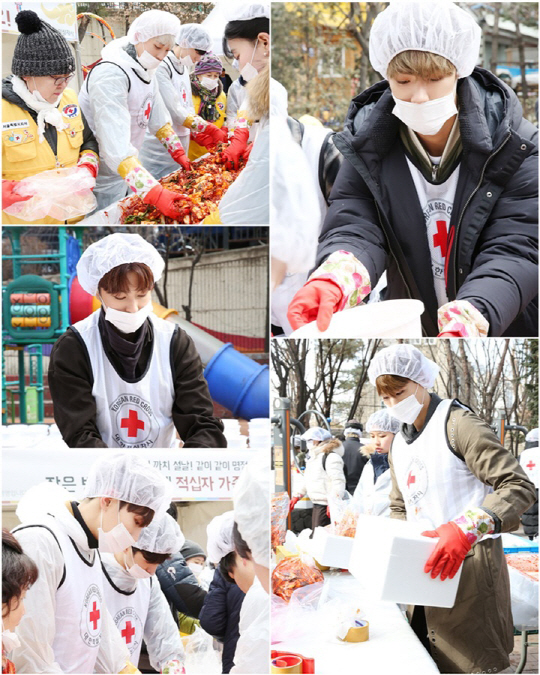 VAV(세인트반, 에이노, 에이스, 바론, 로우, 지우, 제이콥)는 지난 12일 서울 동자동 새꿈어린이공원에서 홀로 명절을 보내는 쪽방촌 주민들을 위해 약 100여명의 자원봉사자들과 함께 설맞이 김치 담그기, 떡국만들기 봉사활동에 참여하였다.