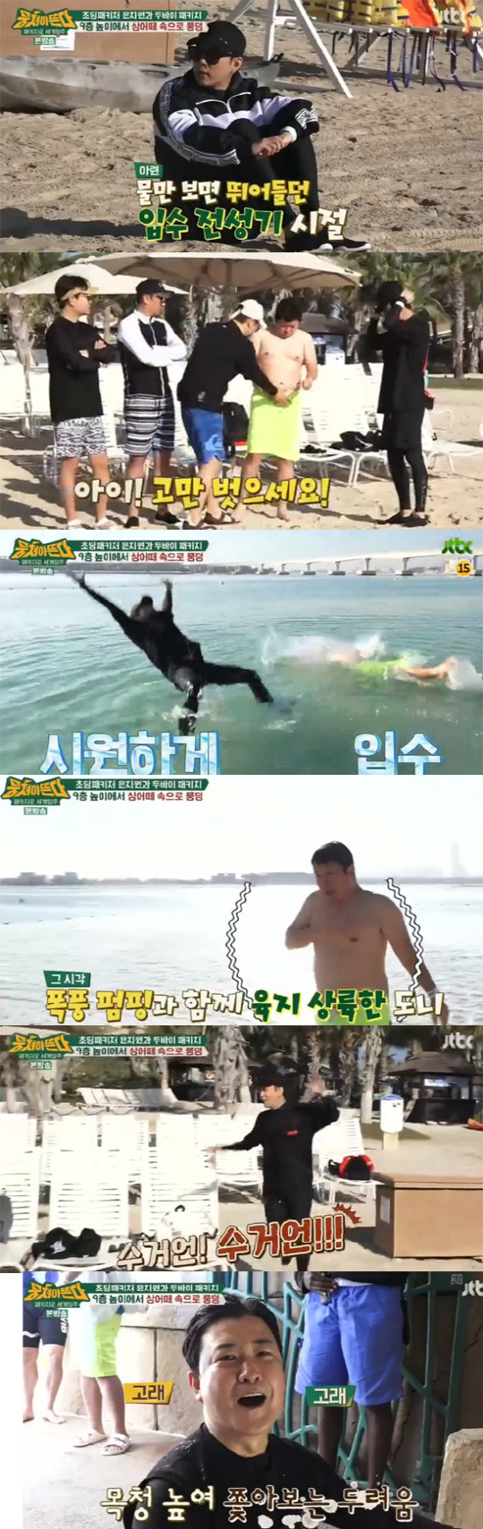 멤버들은 두바이 바다 앞에서 은지원의 '복불복 입수'를 떠올렸고, 패키지 멤버들과 가위바위보로 입수자를 가렸다. 최종 입수자는 정형돈. 정형돈은 은지원을 지목해 둘이 나란히 입수하게 됐다.