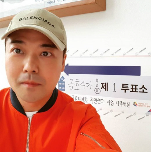 전현무는 부지런하게 아침부터 투표를 하기 위해 '금호4가동 제 1투표소'를 찾았다. 상큼한 오렌지빛 외투와 면도를 한 깨끗한 피부가 시선을 끈다.