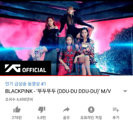 지난 16일 오후 8시 55분, 유튜브에 게재된 블랙핑크의 첫 미니앨범 'SQUARE UP(스퀘어 업)' 타이틀곡 '뚜두뚜두' 뮤직비디오는 27시간 만에 4천만뷰를 돌파했다.