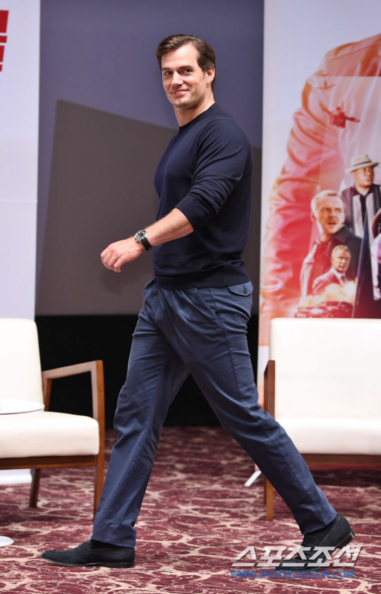 인터뷰에서 헨리 카빌이 입장하고 있다.
