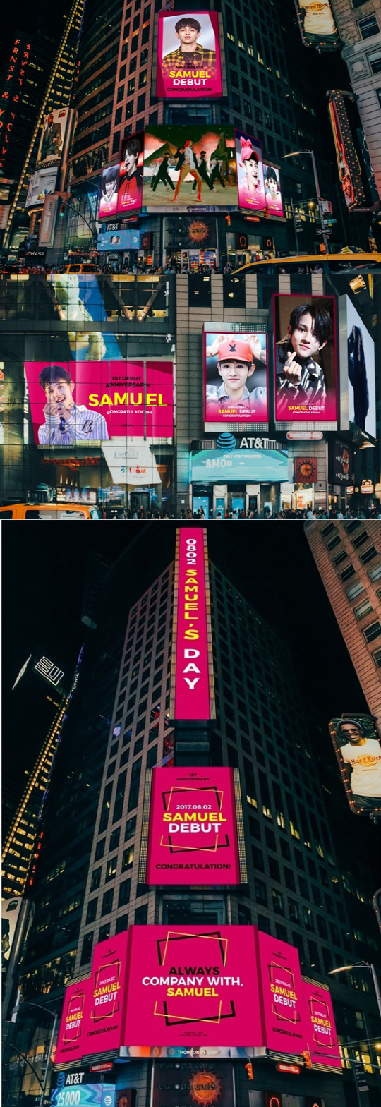 팬들 역시 힘을 모아 미국 뉴욕 타임스퀘어에 사무엘의 데뷔 1주년을 축하하는 메시지가 담긴 기념 광고를 게재하는 뜻 깊은 선물을 선사하며, 사무엘의 깜짝 선물에 훈훈하게 화답했다.