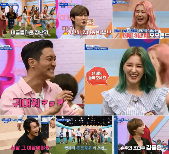 지난 2일 방송된 XtvN '슈퍼TV 2'(기획 이예지/ 연출 천명현/ 작가 황선영) 9회에서는 슈주와 모모랜드의 아홉 번째 예능 빅매치가 펼쳐졌다. 이 가운데 모모랜드는 누구 하나 빼놓을 수 없는 비글 매력을 과시하며 단번에 슈주를 압도해 관심을 집중시켰다.