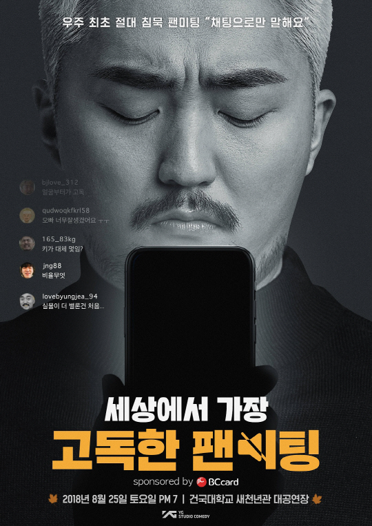 한편 유병재의 '세상에서 가장 고독한 팬미팅'은 오는 25일(토) 오후 7시 서울 화양동에 위치한 건국대학교 새천년기념관 대공연장에서 열린다. 전석 3만3천원. BC카드로 예매 시 할인 및 기념 티셔츠 증정 혜택이 제공된다.