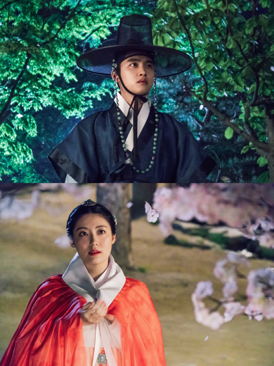 공개된 스틸컷 속 율(도경수)과 홍심(남지현)은 완전무결 왕세자도, 최고령 원녀도 아닌 조선 시대 선비와 양반가 규수의 차림새를 하고 있어 시선을 끈다. 옅은 미소와 다정한 눈길로 꽃을 올려다보는 홍심과 그를 바라보고 있는 율 사이에는 묘한 기류가 흐르는데다 두 선남선녀의 상식파괴 비주얼 케미가 돋보여 호기심을 자극한다.