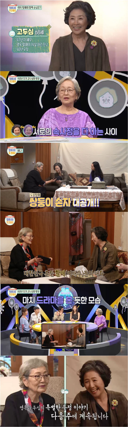 이에 시청자들은 방송 직 후 '국민할매와 국민 엄마의 만남이다' '이 모습 자주 보고 싶다' '명품 배우들의 의외의 손주 자랑 모습이 정겨웠다' 등 다양한 반응을 보이며 40년 지기의 훈훈한 우정에 반가움을 전했다.