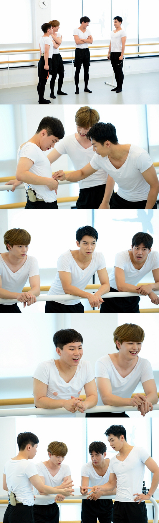 공개된 사진 속에는 옷을 갈아입은 뒤 수줍어하는 이상윤의 모습부터 서로의 타이즈 핏(?)을 점검 중인 멤버들, 발레바에 기댄 채 곧 만날 열다섯 번째 사부가 누구일 지 추리해보는 이승기, 육성재, 양세형의 모습 등이 담겨 있어 눈길을 끌었다.