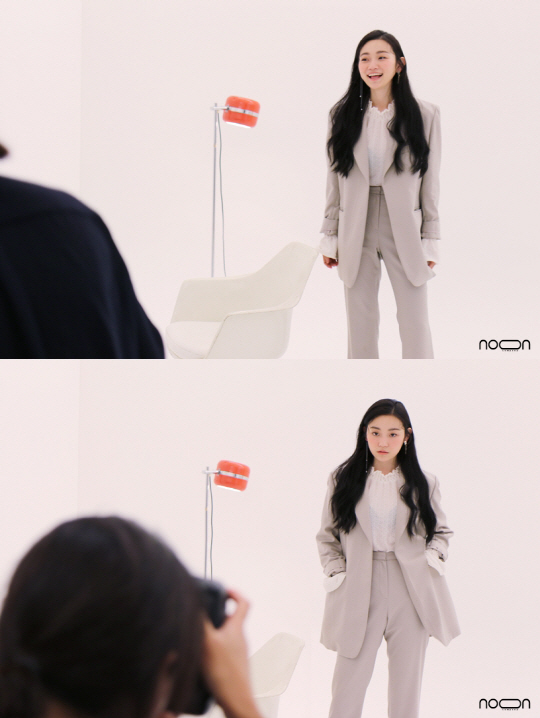 김슬기는 3일 소속사 눈컴퍼니의 네이버 공식 포스트를 통해 화보 촬영 현장 비하인드 컷을 선보여 이목을 끌었다.
