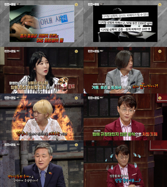 한편, 이날 방송에서는 '디지털 성범죄' 처벌을 놓고 입법의 부재를 지적하며 법적 안정성을 지키기 위해 법리 해석에는 한계가 있다는 신중권 전 판사와 유연하게 법 해석을 충분히 할 수 있다고 주장하는 표창원 국회의원이 대립해 불꽃 튀는 설전을 펼쳐 모두의 이목을 집중시켰다.