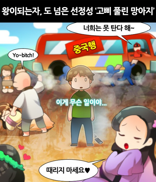올해 4월 국내 출시된 '왕이되는자'는 초반부터 허위, 과장 광고로 도마 위에 올랐다. 게임 아이콘과 소개 이미지를 보면 조선 시대 배경인 게임으로 보이지만, 실제로는 청나라 배경이다. 이뿐만 아니라 여성을 벗긴 후 알몸인 채로 피가 나게 만드는 묘사를 하거나 '바보 아이를 낳은 죄'로 여성을 감옥에 가두고 매질하는 광고가 있는가 하면, 여성이 '아버지를 위해 몸을 판다'는 팻말을 들고 있는 등 여성을 성(性) 상품화하는 음란 광고를 내보냈다.